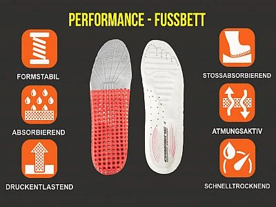 - Anatomisch geformtes Fußbett mit stoßabsorbierendem Einsatz