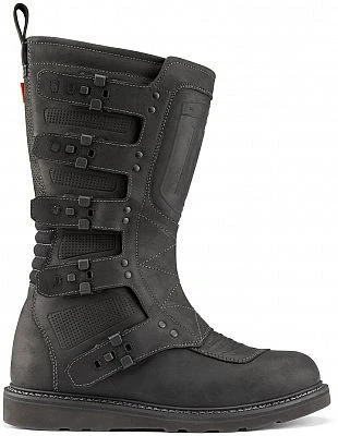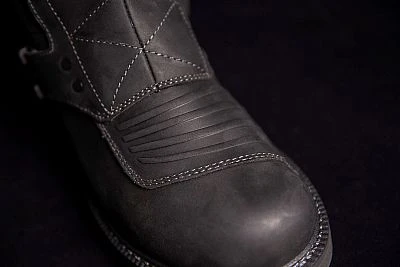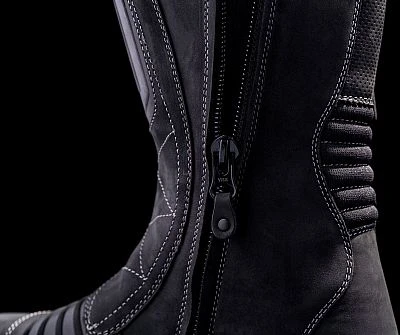 Das hochwertige Obermaterial aus Leder und die rutschfeste Sohle sorgen für einen robusten Stil und eine bequeme Passform. Das Elsinore™ Fünf-Riemen-Chassis ermöglicht eine verstellbare Passform und verfügt über einen seitlichen Reißverschluss für einfaches An- und Ausziehen. Die verstärkte Schienbeinplatte und die internen D3O® Knöcheleinsätze bieten funktionellen Schutz, falls Deine Fahrt eine Wendung zum Schlechteren nimmt. Und schließlich bietet die hochelastische EVA-Schaumstoff-Einlegesohle den ganzen Tag über Komfort und Halt beim Motorradfahren.