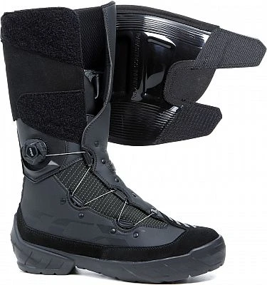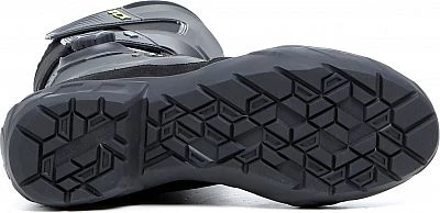 Die Groundtrax® Laufsohlen wurden entwickelt, um Stabilität, Grip und Traktion sowohl auf den Fußrasten als auch nach dem Absteigen zu gewährleisten. Dies ist auf das Design der Stollen und Rillen sowie auf die Wahl der Gummimischung zurückzuführen, die auch die Abriebfestigkeit und Selbstreinigung der Lauffläche maximieren. Die Sohle ist mit einem speziellen Schaltbereich versehen, um eine höhere Präzision während der Fahrt zu gewährleisten.
