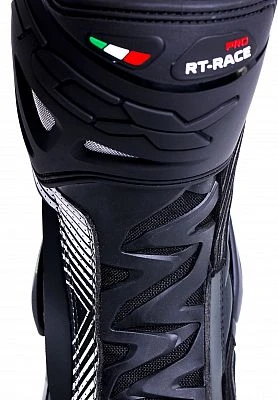Der RT-Race Pro Air beinhaltet Fasten Fit Control, ein in das Stiefelfutter integriertes Schnell-Schnürsystem, das dafür sorgt, dass das Obermaterial den Fuß perfekt umschließt und eine millimetergenaue Anpassung der Passform ermöglicht. Das Verschlusssystem des Stiefels verfügt über einen Aluminiumhebel mit mikrometrischer Verstellung und Schnellverschluss, der den Schaft perfekt an die unterschiedliche Anatomie der Wade anpasst, und einen seitlichen Reißverschluss mit Stretch-Panel.