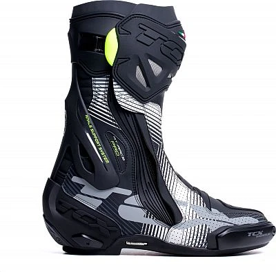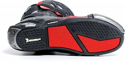 Die von TCX in Zusammenarbeit mit dem Michelin® Forschungszentrum hergestellte „Burnout“-Sohle ist vom Michelin®-Reifen „Power Supersport Evo“ inspiriert und verfügt über ein Dual-Compound-Profil mit differenzierten Gripzonen, die eine höhere Haftung an den Fußrasten und auf den Bedienelementen sowie eine höhere Verschleiß- und Abriebfestigkeit gegenüber Asphalt gewährleisten sollen. Das Profil ist vollständig in das Obermaterial integriert und die Ferse weist eine Neigung des Winkels auf, sodass eine optimale Auflage auf den Fußrasten garantiert ist.