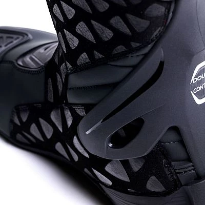 Das Double Flex Control System verfügt über ein PU-Gelenk im Knöchelbereich, um die Flexibilität des Beines nach vorne und hinten zu verbessern. Das System ist mit zwei seitlichen verdeckten Schrauben auf Malleolus Ebene an den Stiefel angebracht. Diese spezielle Konstruktion ermöglicht eine Biegsamkeit nach vorne von bis zu 18° und eine Biegsamkeit von bis zu 15° nach hinten ermöglicht, so dass eine Überdehnung des Sprunggelenks vermieden wird und um den Fuß des Fahrers vor Verletzungen zu schützen.