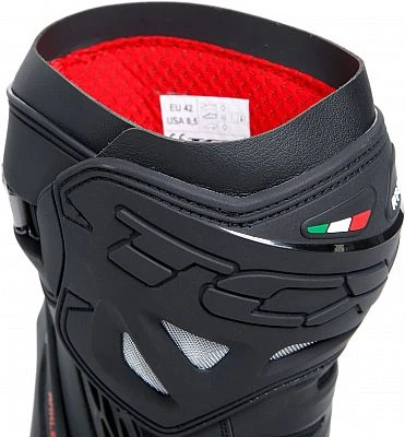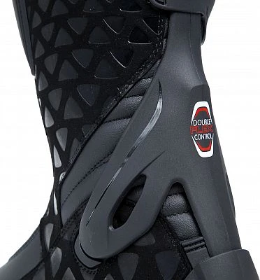 Das Double Flex Control System verfügt über ein PU-Gelenk im Knöchelbereich, um die Flexibilität des Beines nach vorne und hinten zu verbessern. Das System ist mit zwei seitlichen verdeckten Schrauben auf Malleolus Ebene an den Stiefel angebracht. Diese spezielle Konstruktion ermöglicht eine Biegsamkeit nach vorne von bis zu 18° und eine Biegsamkeit von bis zu 15° nach hinten ermöglicht, so dass eine Überdehnung des Sprunggelenks vermieden wird und um den Fuß des Fahrers vor Verletzungen zu schützen.